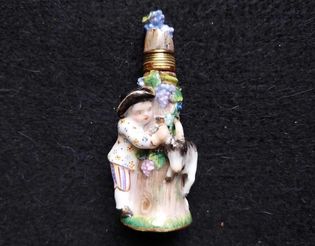 FLACON À PARFUM PORCELAINE DE MEISSEN – L’ENFANT ET SA CHÈVRE, vers 1860